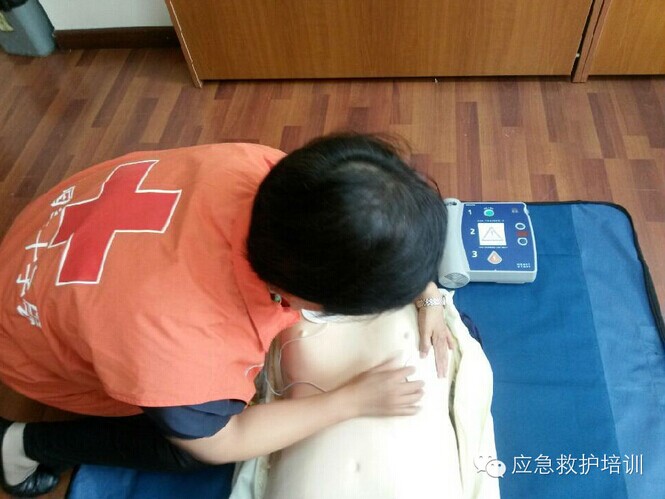 自動體外除顫器(AED)的使用∶體外心臟除顫適用于心室纖顫的傷病員。1、首先評估傷病員的情況,在無意識、無呼吸、無脈搏,出現(xiàn)心室纖顫、室性心動過速的情況下使用AED。2、按下開關,一個電極片貼在傷病員裸胸的右鎖骨下方,另一個貼在左乳房外側(cè),將電極與AED連接除顫時救護員及在場的所有人員不要接觸傷病員身體。3、分析后確認需要除顫,AED發(fā)出充電信號,自動充電完畢后,按動除顫放電鍵,完成一次除顫。4、電擊后立即進行5個周期的CPR(大約2分鐘) 然后檢查心跳是否恢復。